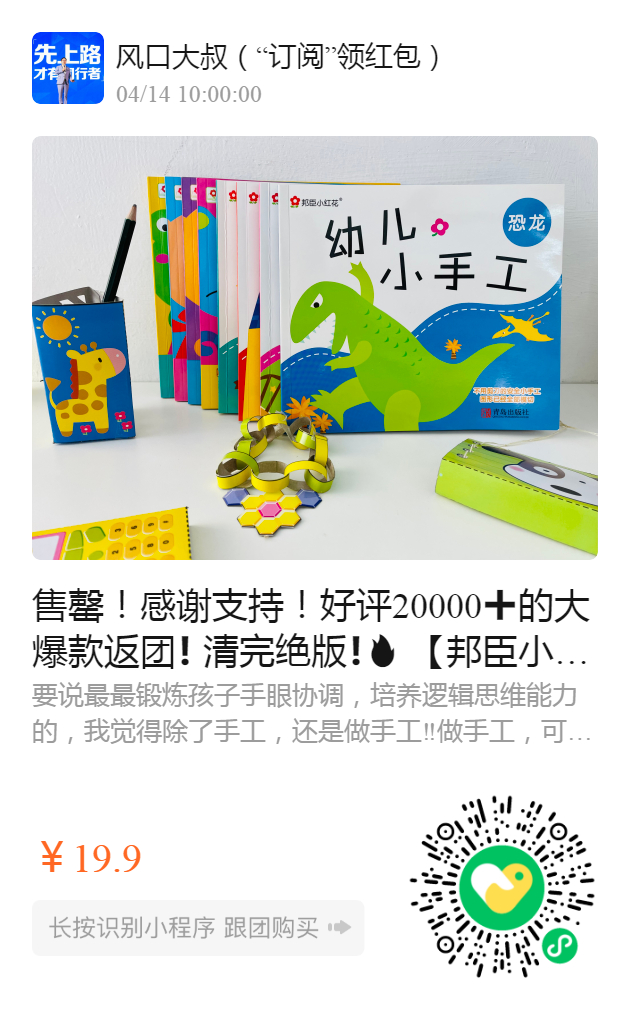 售罄!感谢支持!好评20000➕的大爆款返团❗ 清完绝版❗ 【邦臣小红花】 正版《幼儿小手工》8册清仓狂甩!超底价!!加1角钱白捡2大本邦臣幼儿小手工,不用剪刀特安全
