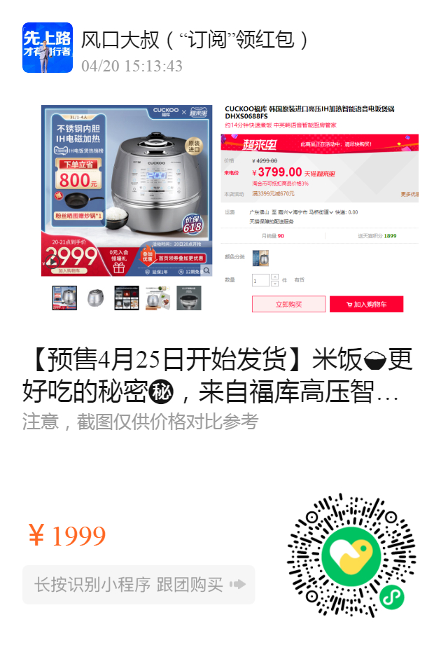 【预售4月25日开始发货】米饭更好吃的秘密️,来自福库高压智能语音电饭煲DHXS0688FS 高端LED显示,IH加热,ECO不锈钢内胆,3L容量 完美✔️