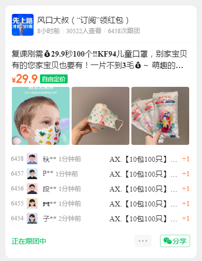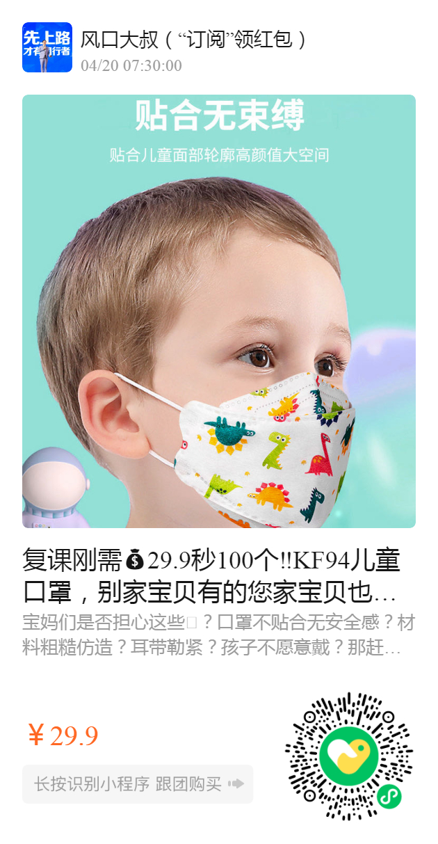 复课刚需29.9秒100个‼️KF94儿童口罩,别家宝贝有的您家宝贝也要有!一片不到3毛~