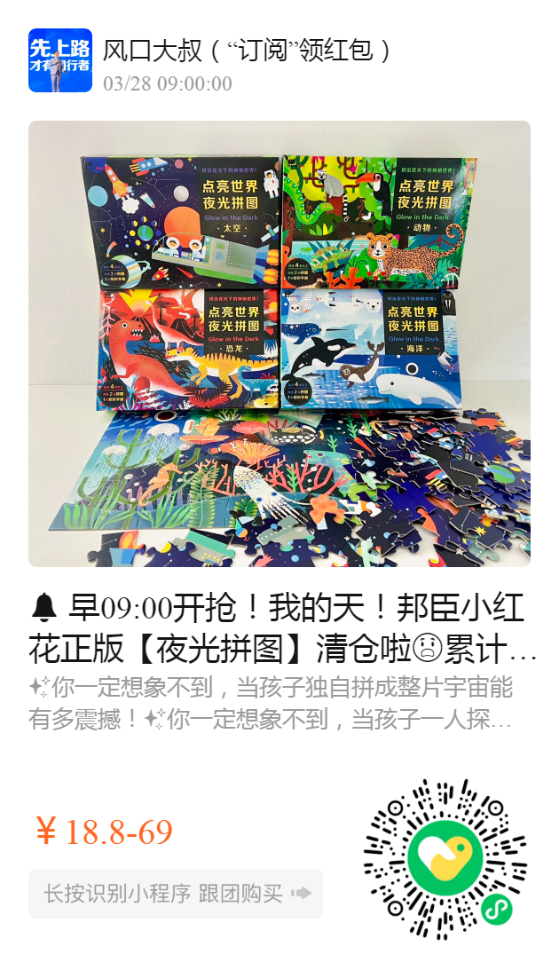 早09:00开抢!我的天!邦臣小红花正版【夜光拼图】清仓啦累计200000+好评好评🏻 比某东便宜50多,一大盒只要18.8!随时涨价,手慢!性价比之王!礼盒包装,送人也体面!
