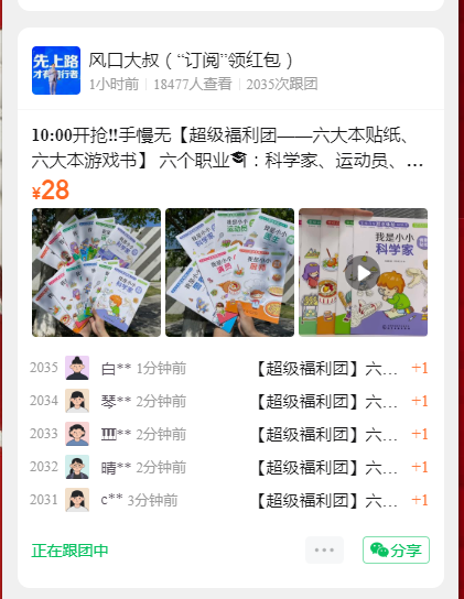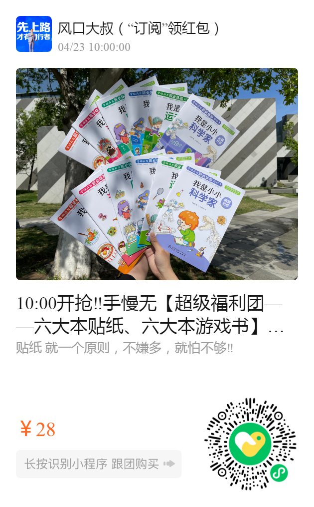 10:00开抢‼️手慢无【超级福利团——六大本贴纸、六大本游戏书】 六个职业:科学家、运动员、警察、医生、演员和厨师,通过贴纸游戏,让小朋友自己选择、决策、执行。丰富的全脑开发题,让孩子的左右脑充分动起来,越玩越聪明