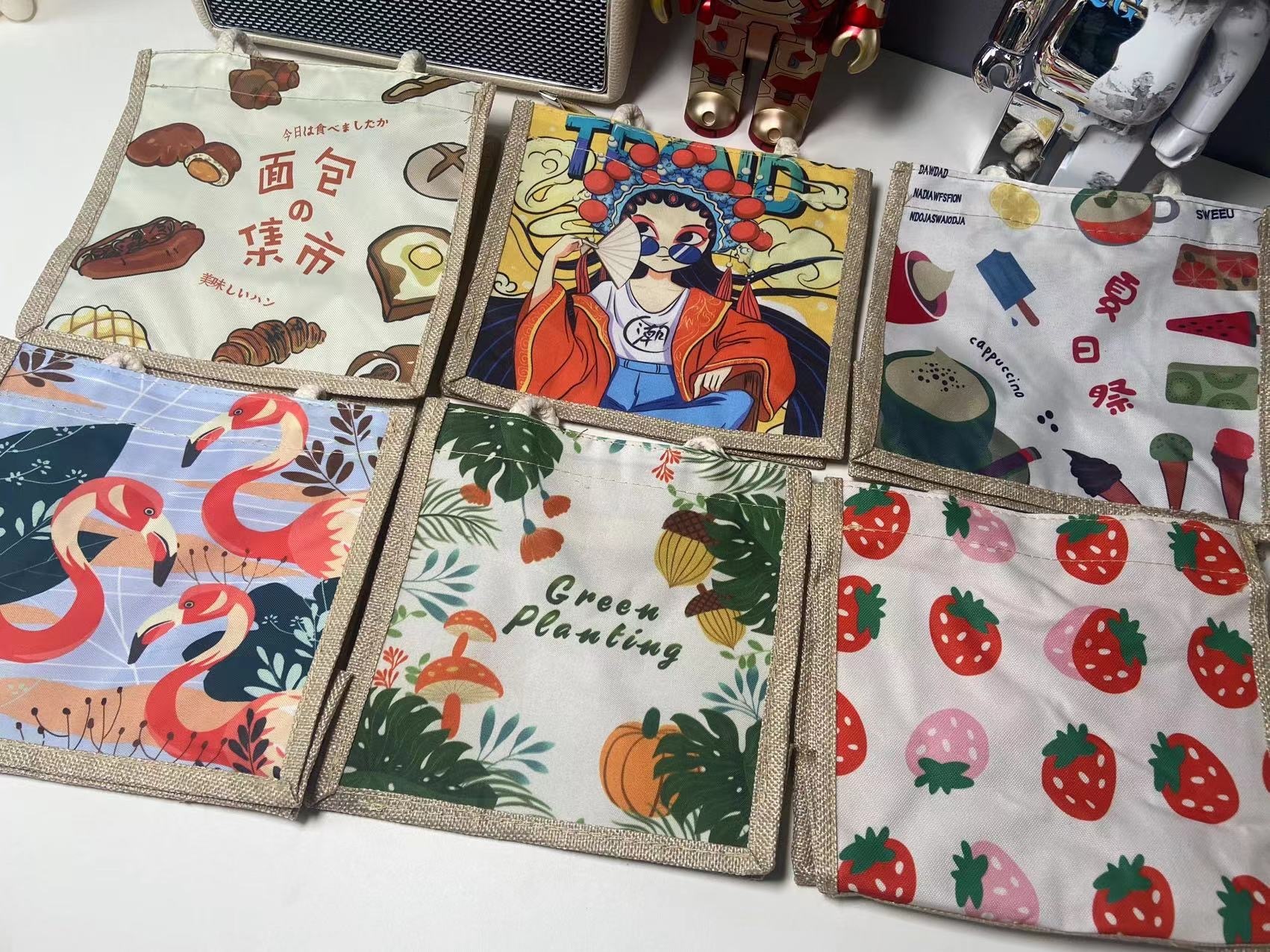 9.9包邮2个! 炒鸡好看的 手绘便当包,8款【拉链款】 随机发❗️ 有些和风元素!非常时尚,敲适合收纳上班族通勤要带的饭盒,雨伞,平时出去玩或者买啥东西装装手机!宝妈带孩子放奶瓶🍼!化妆品零零碎碎的一些小东西也是杠杠的,轻巧又能装,关键还超级便宜,简直爱了爱了!!