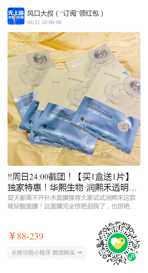 ‼️周日24:00截团!【买1盒送1片】独家特惠!华熙生物·润熙禾透明质酸水感倍至面膜,简称“水库面膜”,华熙旗下高端母婴线,安全到孕妇哺乳都可用!温和不刺激!敏感肌放心入!️疫情地区🉑️保留订单,勿催~