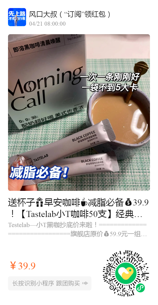 送杯子早安咖啡️减脂必备39.9!【Tastelab小T咖啡50支】经典原味 清新美式️精选阿拉比卡豆烘焙而成 3s即溶!