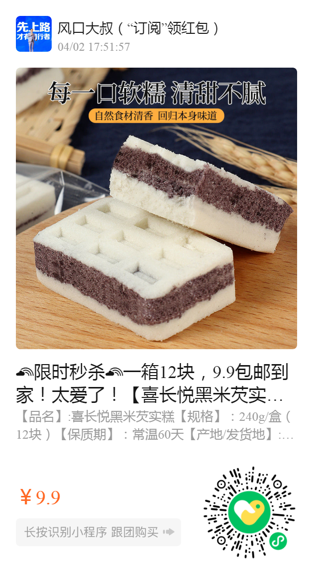 限时秒杀一箱12块,9.9包邮到家! 太爱了!【喜长悦黑米芡实糕】每一口都软糯,每一口都香甜。 黑米补脾,芡实祛湿,口口美味,口口营养