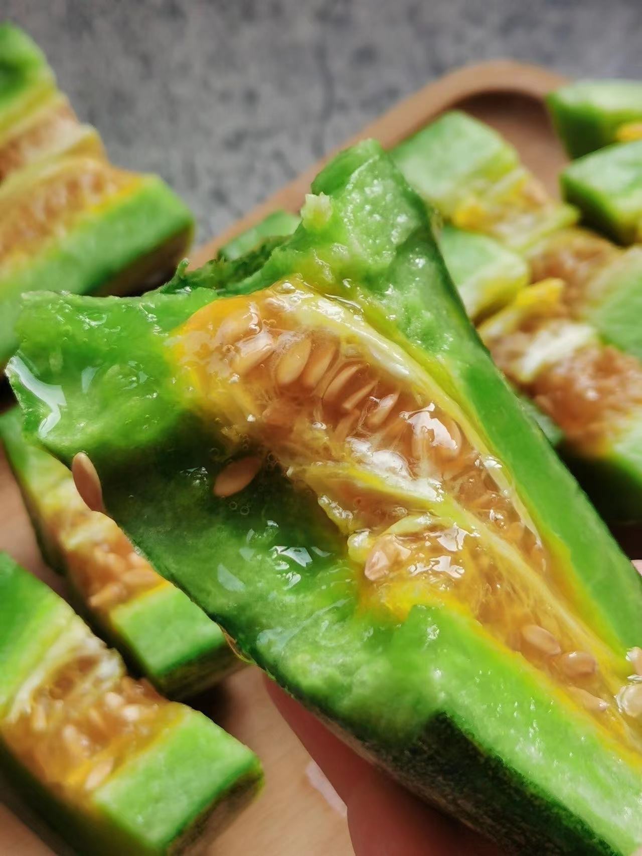 【博洋9】 蜜瓜界的扛把子!💥 口感,瞬间秒杀那些当黄瓜吃的假羊角蜜 现在是她最好的时候 🥳皮薄如纸,甜似蜂蜜,连皮带籽一起吃一口下去脆甜到醉️ 🧡甜脆多汁!隔着屏幕都能闻到的清爽🤩 最好吃甜蜜瓜,吃过博洋9号,其他品种再也不吃了‼️