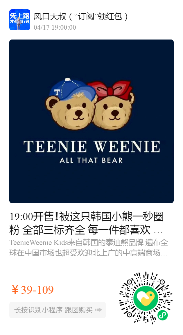 19:00开售❗️被这只韩国小熊一秒圈粉 全部三标齐全 每一件都喜欢 一如既往的好质量 TeenieWeenie Kids大集合 ️限量现货库存 抢
