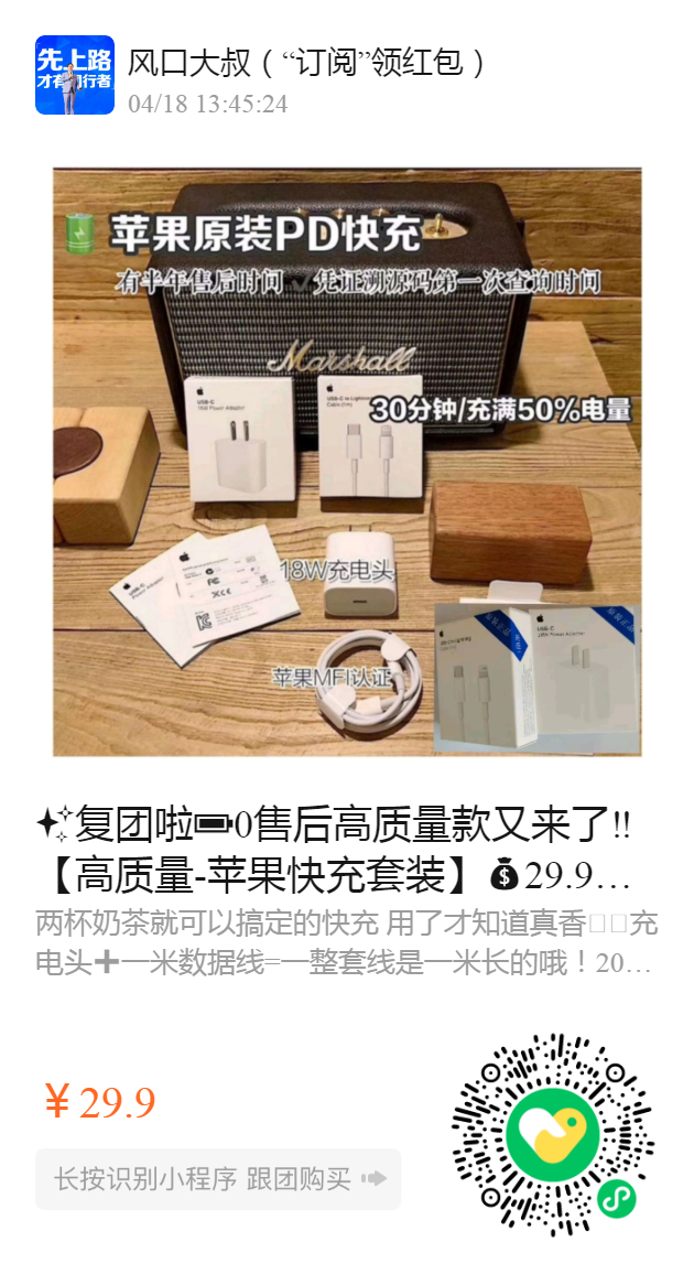 复团啦🔋0售后高质量款又来了‼️【高质量-苹果快充套装】29.9元【一套=充电头+一米数据线】Mfi认证数据线套装 一小时充电50%‼️‼️ 两杯奶茶钱就可以拥有,夏天手机再也不用边充电边玩手机啦 还烫手 充电快省时间超安全 代工厂 介意慎拍