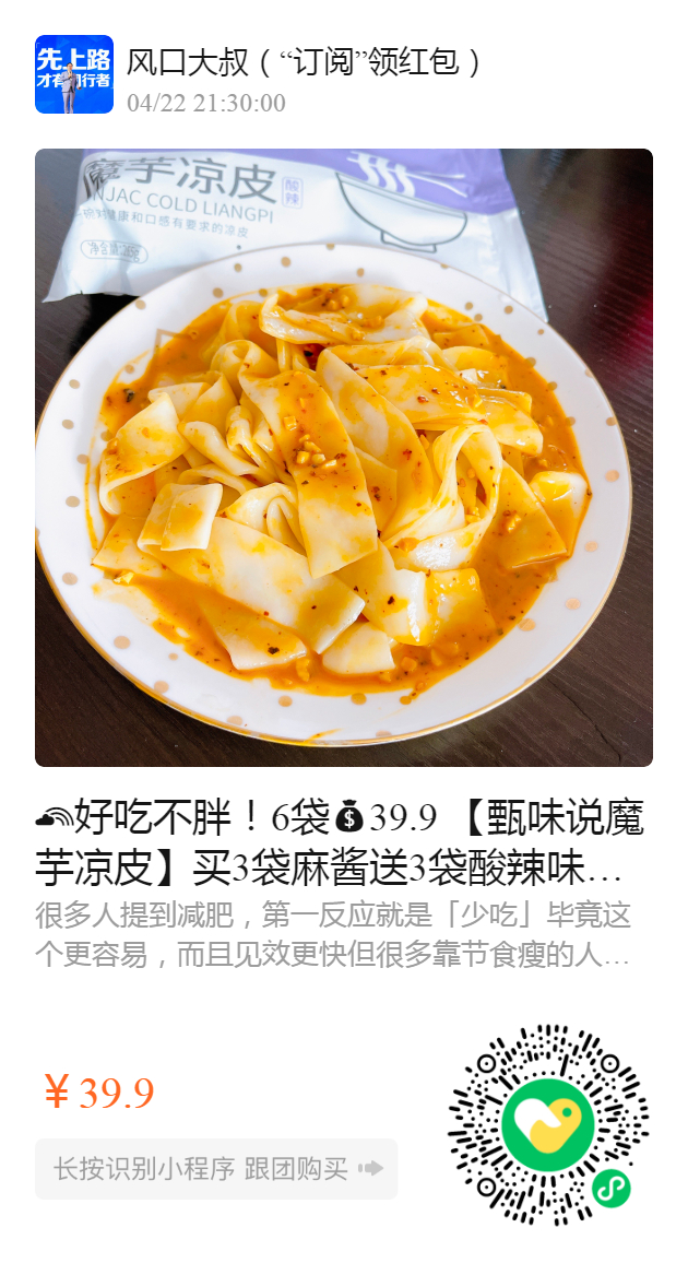 好吃不胖!6袋39.9 【甄味说魔芋凉皮】买3袋麻酱送3袋酸辣味,到手️6包!没有凉皮的夏天是不完整的!带你一起探究吃不胖的秘密‼️ 酸辣过瘾🏻一餐比普通凉皮少嗫入90%碳水📈 1袋饱腹4小时 !低碳水放肆吃💕💕💕 减肥保持身材无需挨饿,一碗魔芋凉皮满足你美味➕减肥的需求,2023.3