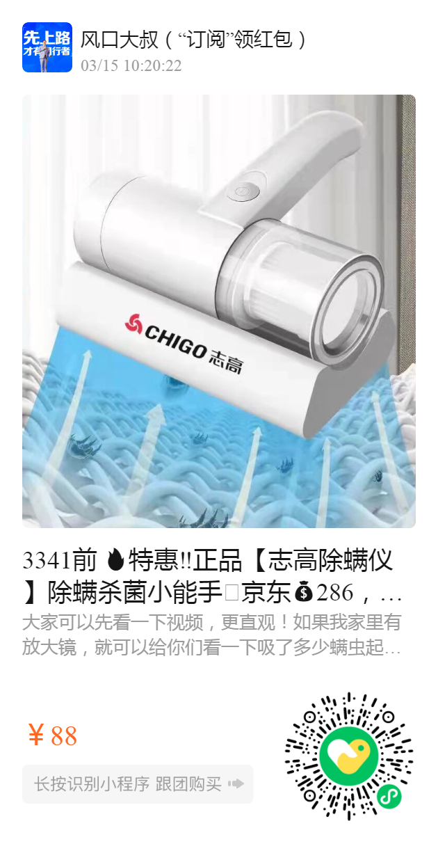 3341前 特惠‼️正品【志高除螨仪】除螨杀菌小能手🦠京东286,咱们仅88带走!既是杀菌除螨仪、也是无线吸尘器、更是车载吸尘器!1台顶3台!