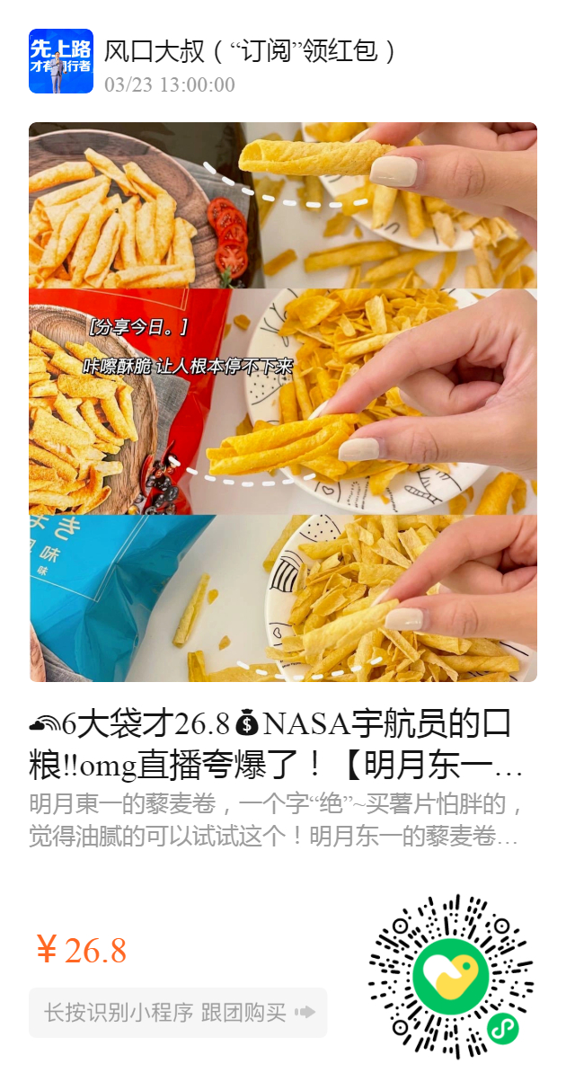 6大袋才26.8NASA宇航员的口粮‼️omg直播夸爆了! 【明月东一藜麦卷】️🤩日本零食藜麦卷 真的很惊艳烤肉味🥩龙虾味🦞牛腩味🦬满足一切肉食爱好者的需求🏻 😋口感脆到爆🙀对减脂人群真的是太友好了吧❗️这下吃零食都不怕胖啦😽上瘾又上头 🐣完全停不下来啊~