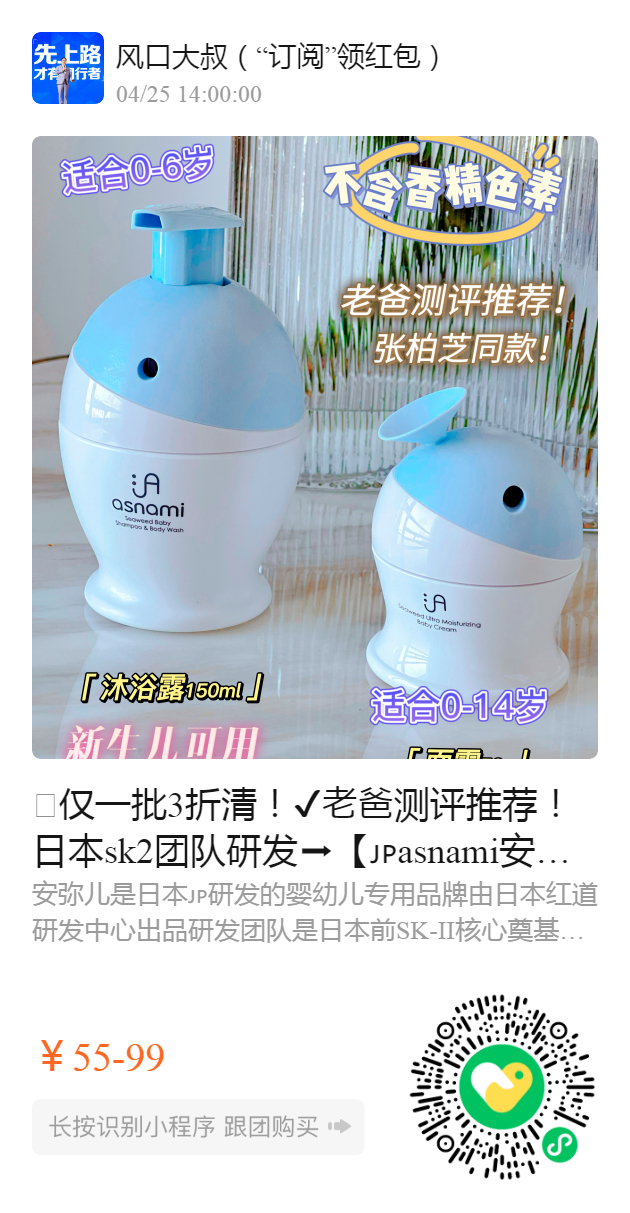 🥬仅一批3折清!✔老爸测评推荐!日本sk2团队研发️【asnami安弥儿宝宝面霜&二合一洗发沐浴露】长效保湿维稳福音,张柏芝同款!