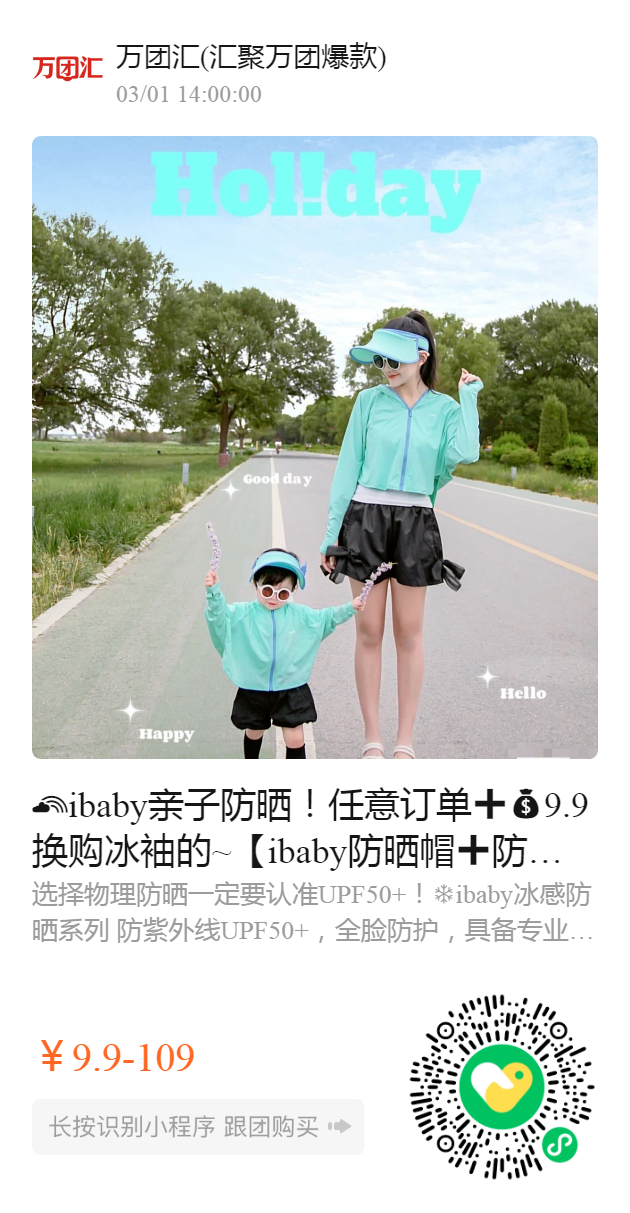 ibaby亲子防晒!任意订单➕9.9换购冰袖的~【ibaby防晒帽➕防晒衣➕防晒冰袖】,89%锦纶➕11%氨纶,李佳琦、老爸测评推荐、董璇推荐 / 夏日防晒必备,多重黑科技 释放防晒源动力,‼️真正抵御紫外线UPF>50+,防晒亲子装回头率不要太高💕!