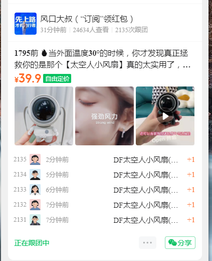 1795前 当外面温度30°的时候,你才发现真正拯救你的是那个【太空人小风扇】真的太实用了,精致好看,出门必备🤙 不仅能降温🥵,能促进空气流通!学生党和上班族都给我备上这个移动小空调🧊 放在桌子上就像是一个精致的摆件,光是颜值,就很值得入手了 抖音199,我们39.9,赶紧带走吧🥰