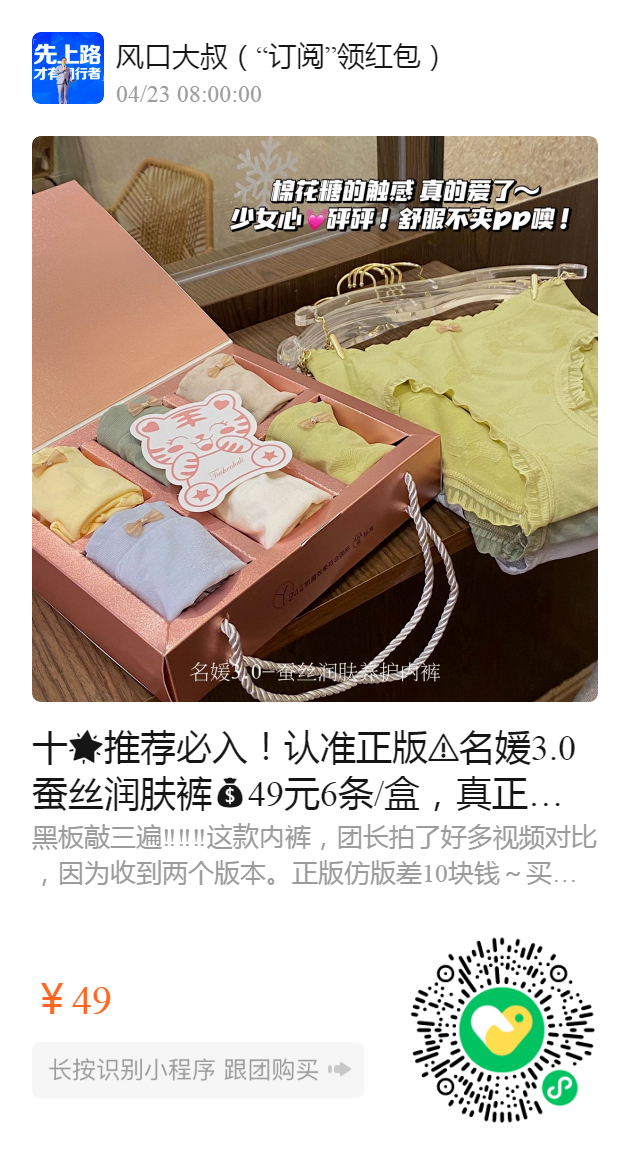 十推荐必入!认准正版️名媛3.0蚕丝润肤裤49元6条/盒,真正的桑蚕丝内裆~原价699 高級感满满!这货买到手真的是妥妥的复购! 超高品质带礼盒送閨蜜送婆婆送媽媽都很好! 品牌清库存!仅2000盒❗️正版。