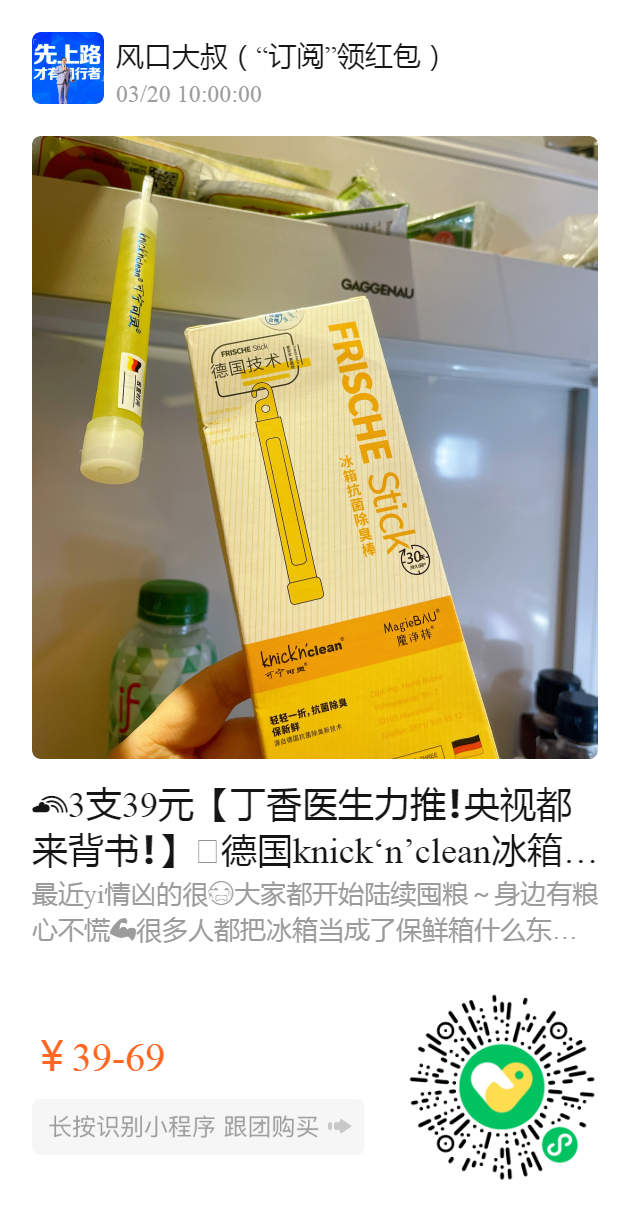 3支39元【丁香医生力推❗️央视都来背书❗️】🤩德国knick‘n’clean冰箱抗菌除臭棒来啦! ❗️连世界卫生组织都认可的抗菌消毒剂 除味➕保鲜➕杀菌 专利技术,一盒3支装! 每支🉑️持续杀菌30天,消灭99%病菌💥 ‼️品牌直发确保正品,请放心用️