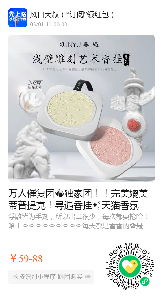 万人催复团独家团!!完美媲美蒂普提克!寻遇香挂天猫香氛类目排名第一品牌线下139一个,我们两个88‼️礼盒包装!送人自用皆可!