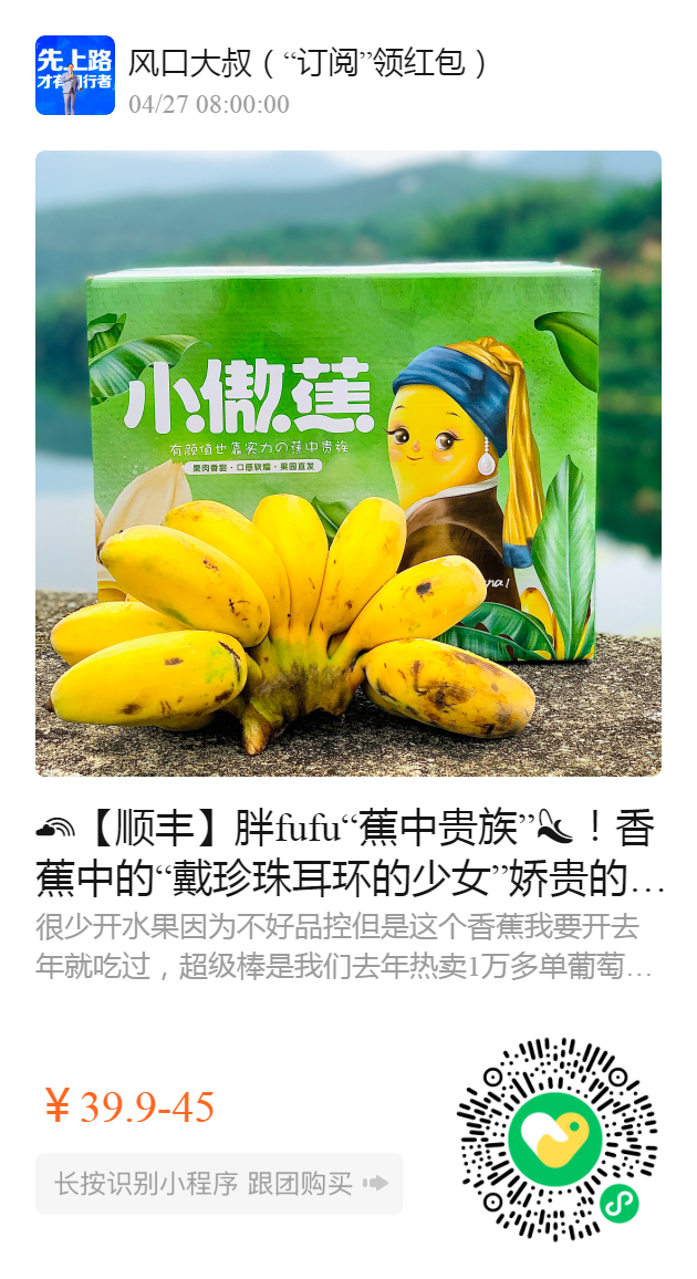 【顺丰】胖fufu“蕉中贵族”🍌!香蕉中的“戴珍珠耳环的少女”娇贵的小傲蕉苹果蕉!