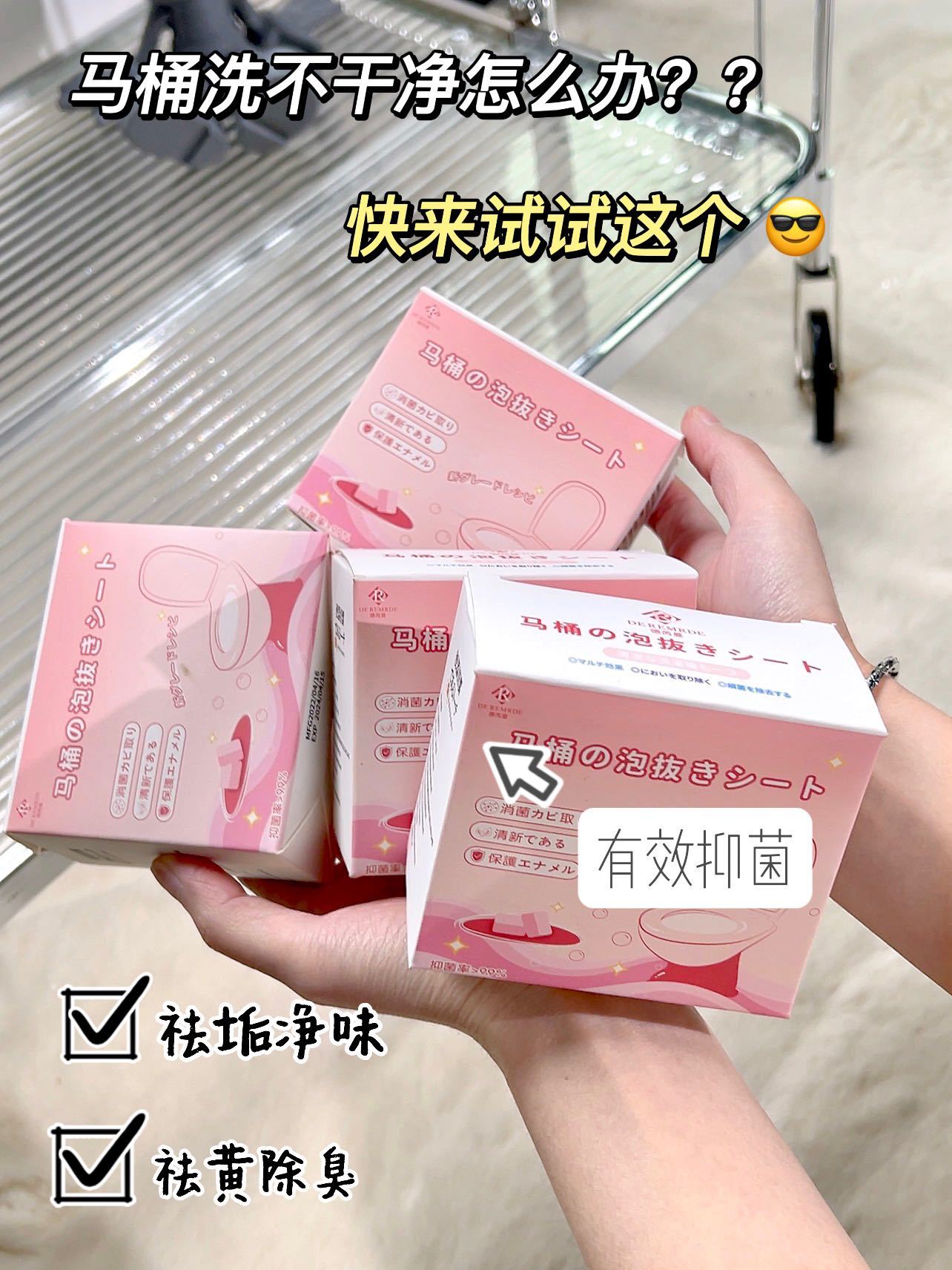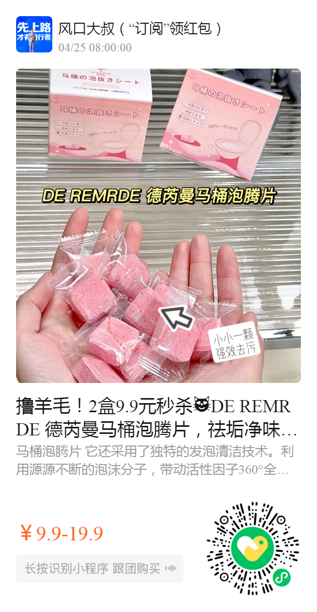 撸羊毛!2盒9.9元秒杀😻DE REMRDE 德芮曼马桶泡腾片,祛垢净味,遇水泡腾,快速清洁,有效抑菌,祛黄除臭,不伤釉面,带走污垢✅清香宜人,去除污垢♻️除臭抗菌🍋气味清新迅速生效❗️❗️ 能够有效的去污垢,增强去污效果,免去刷洗的麻烦~有效清除下水管深处污垢,预防恶臭!