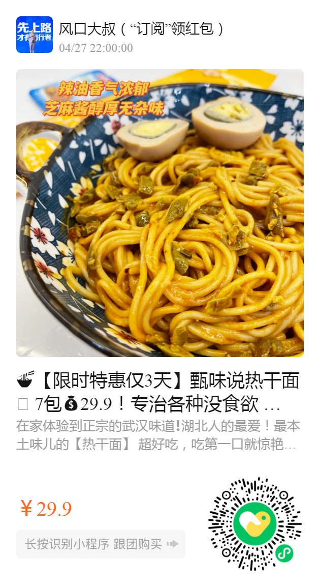 【限时特惠仅3天】甄味说热干面🧊 7包29.9!专治各种没食欲 !好吃到舔碗底❗️ 🤤连吃三天不过瘾❗️强烈安利❗️ 快抛弃油腻且高脂的泡面吧!五分钟、几块钱一碗神仙面不香吗🤤有调料汁包,芝麻酱包,辣椒油包!还赠送酸豆角!新日期~
