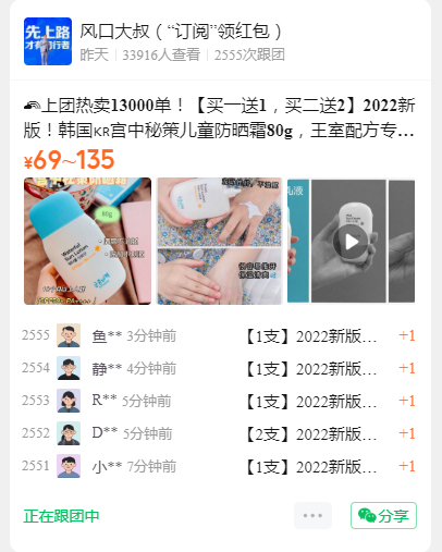 上团热卖13000单!【买一送1,买二送2】2022新版!韩国宫中秘策儿童防晒霜80g,王室配方专注宝宝护肤!