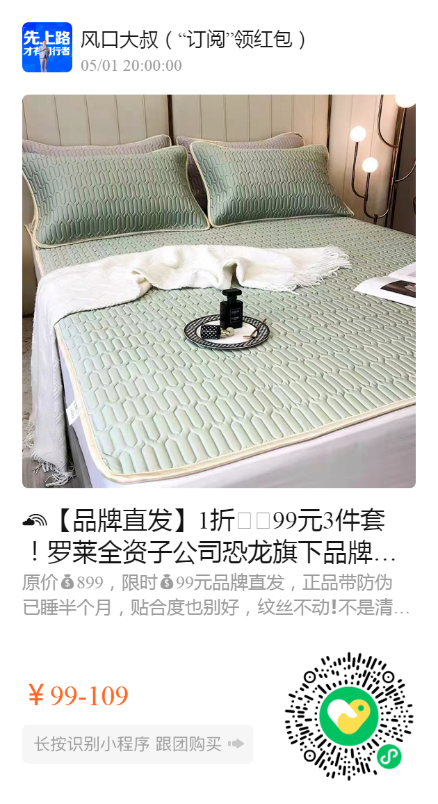 【品牌直发】1折🥬99元3件套!罗莱全资子公司恐龙旗下品牌龙宝生活乳胶凉席三件套!正品带防伪!
