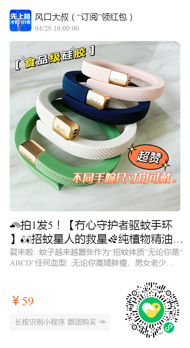 食品级硅胶,不含避蚊胺等任何有害物质,儿童可戴、亲子款情侣款,不同手腕尺寸均可戴,适合6个月以上~