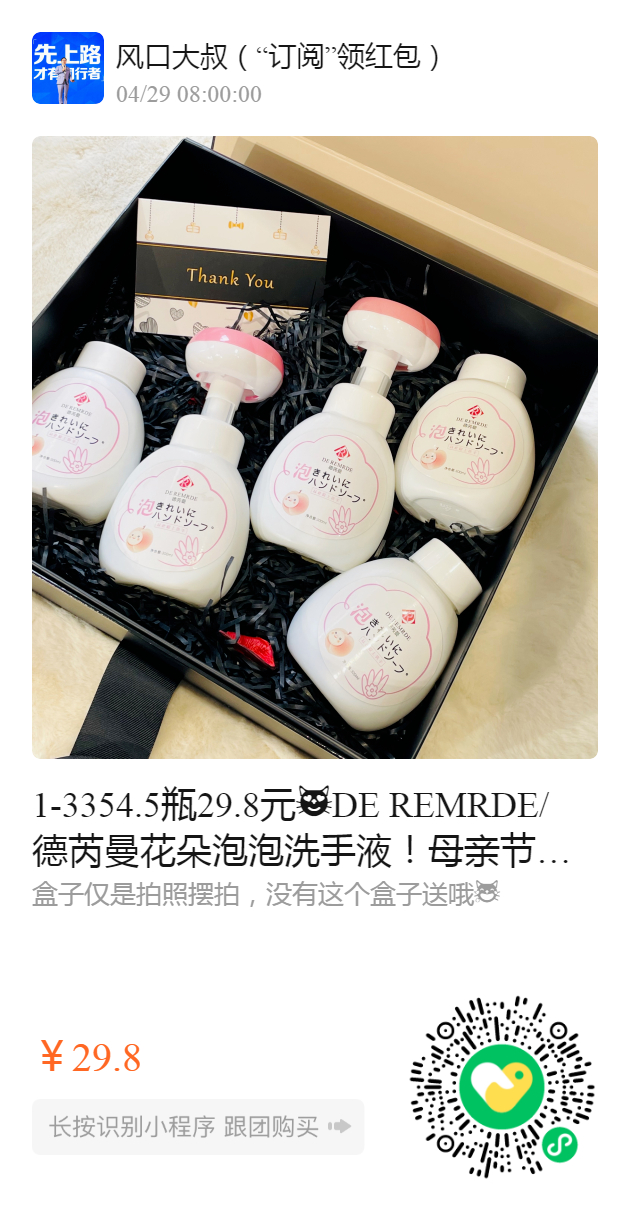1-3354.5瓶29.8元😻DE REMRDE/德芮曼花朵泡泡洗手液!母亲节馈赠!可以护手的洗手液~