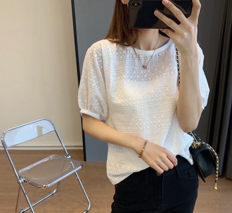 【9:00】咆哮推荐这款小衫😎重工刺绣钩花工艺❗巨遮肉肉的泡泡短袖显瘦纸片人~外贸大厂定制的婴儿级水洗棉纱面料!敏感肌肤也可以穿!夏天穿着特别透气~ ️咱们的面料经过2次水洗定型,柔软感超好!将全棉的亲肤性达到最佳