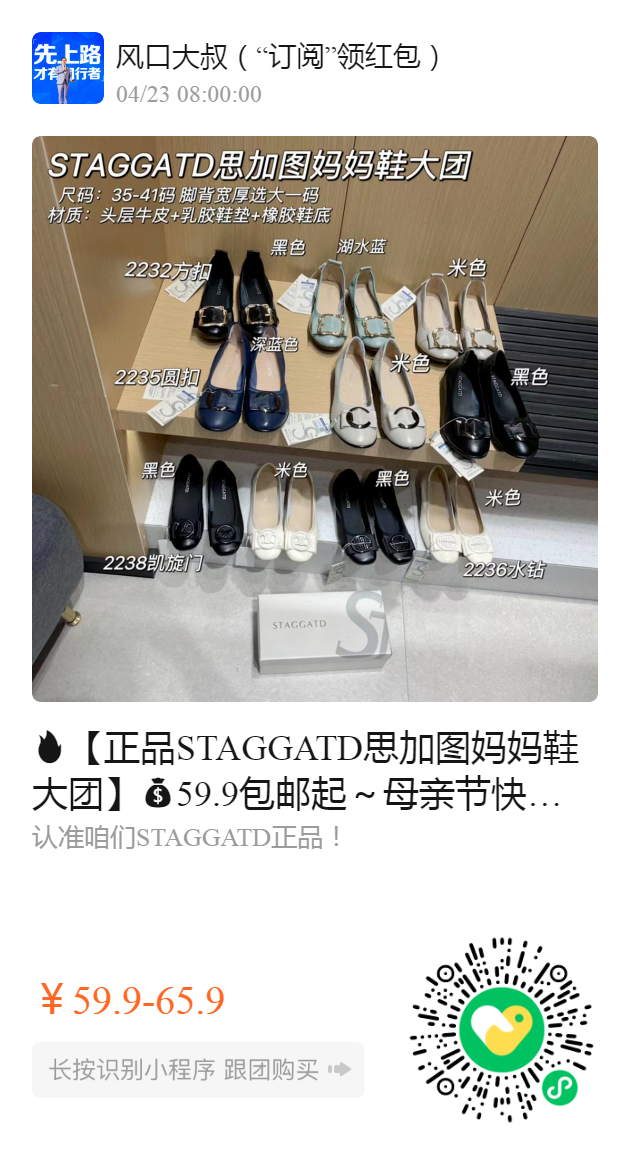 【正品STAGGATD思加图妈妈鞋大团】59.9包邮起~母亲节快到了!花两杯星爸爸钱,给妈妈送一双好穿的鞋,让妈妈开心下,想想怎么都值!