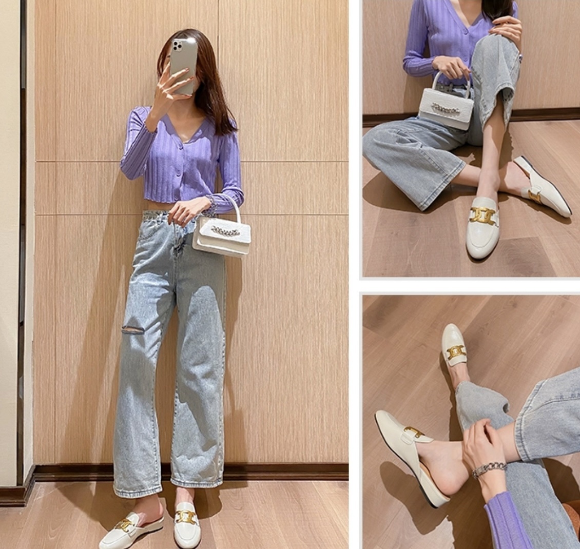 产品名称:羊皮复古金属扣包头半拖凉鞋
