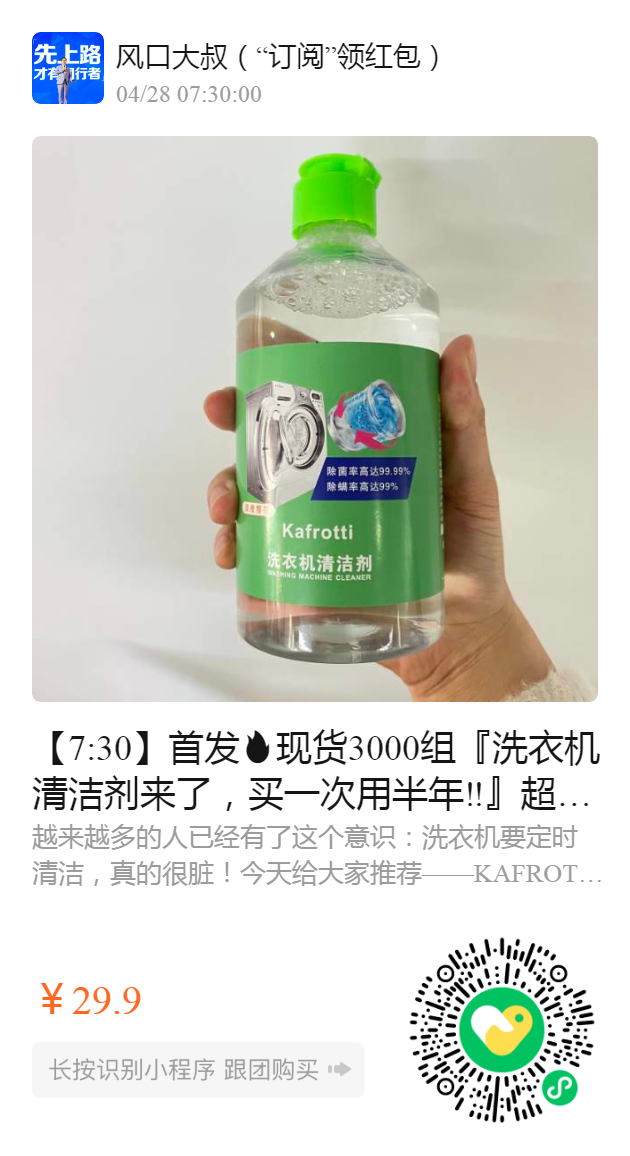 【7:30】首发现货3000组『洗衣机清洁剂来了,买一次用半年‼️』超好用的洗衣机槽清洁剂! ✅洁净去污,去味抑味 ✅无腐蚀性,不伤洗衣机 ✅家庭适用✔️适合所有洗衣机型号的滚筒、波轮、老式的洗衣机~ 全新升级,科学配方,强力清洁顽固污渍,防止衣物的二次污染,家家必备!