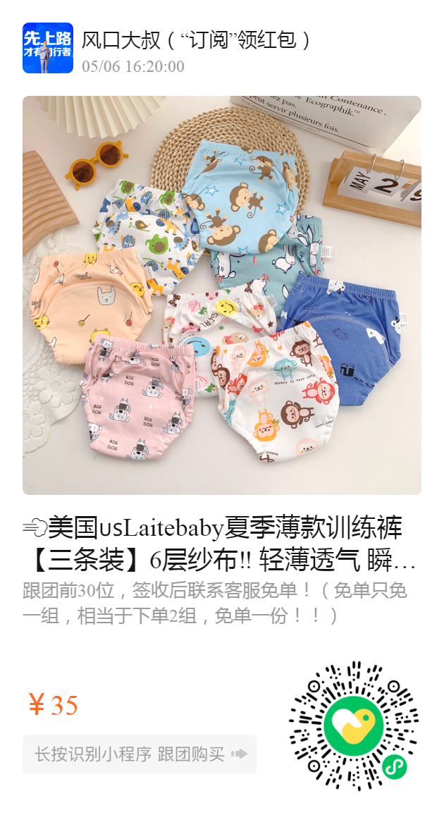 美国Laitebaby夏季薄款训练裤【三条装】6层纱布‼️ 轻薄透气 瞬吸防漏 脱离纸尿裤就靠它~夏天不闷屁屁的bi备神器戒尿不湿神器 AAA级面料可水洗纯棉训练裤❗️🤩超级好用宝宝训练裤,帮宝妈避雷🕳好孩子🏻儿童呼吸训练裤 宝宝成长训练裤尿 透气 舒适柔软! ️穿如厕训练裤,学会自己尿尿啦~🐣