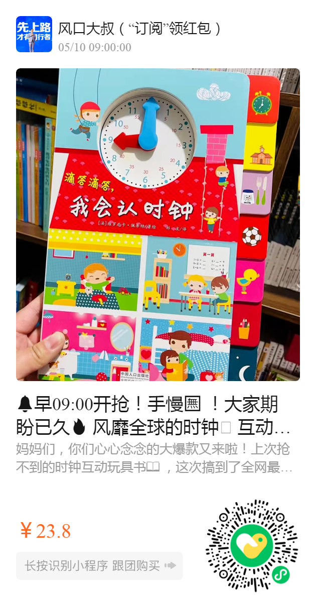 早09:00开抢!手慢 !大家期盼已久 风靡全球的时钟🕰️ 互动玩具书火爆来袭❗引进法国 经典正版 《玩转时钟游戏大书》京dong单本135,咱们惊爆价仅 23.8 错过不再 !
