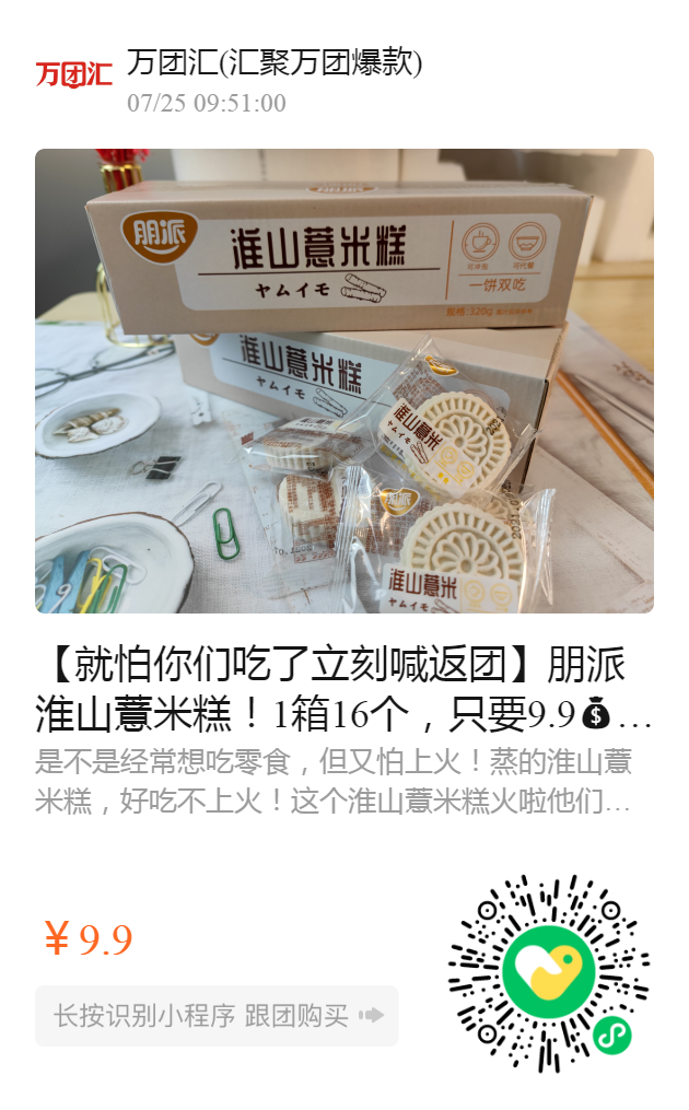 【就怕你们吃了立刻喊返团】朋派淮山薏米糕!1箱16个,只要9.9 说实话我真的不想把它跟养生糕点扯上关系, 我怕埋没了它的美味,真心好吃 甜而不腻 健脾养胃 祛湿助消化👅 重点还是无添加剂、无防腐剂、无色素、无香精❗
