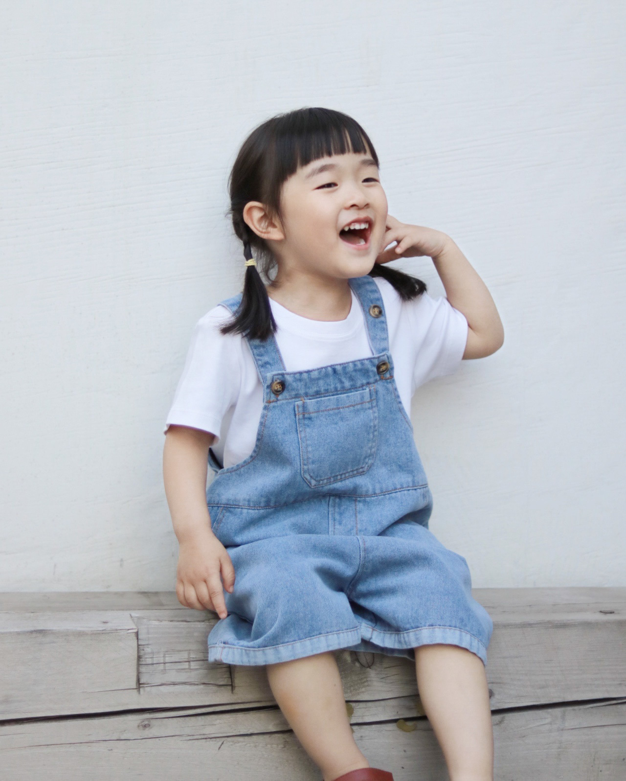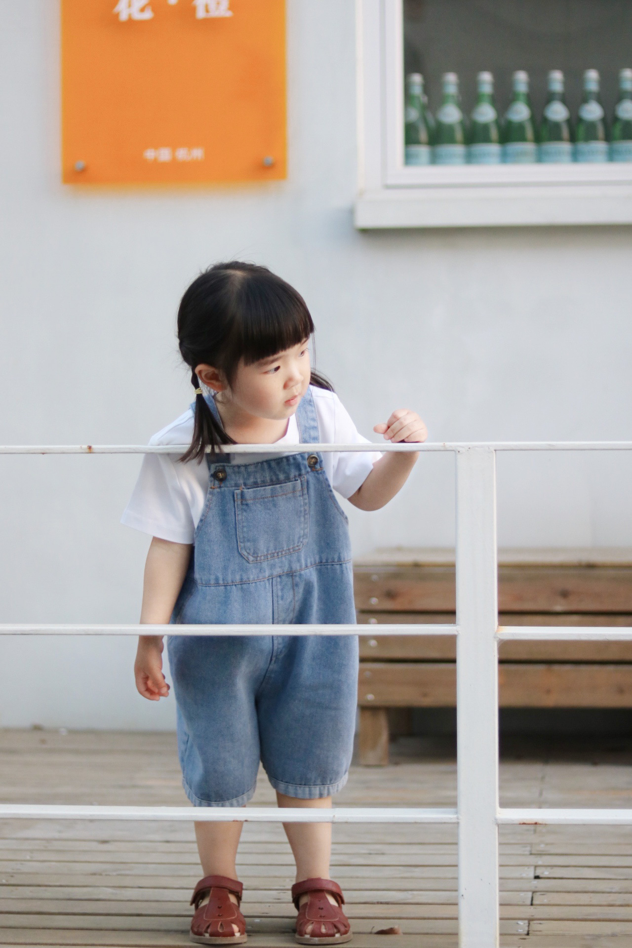 儿童牛仔背带短裤