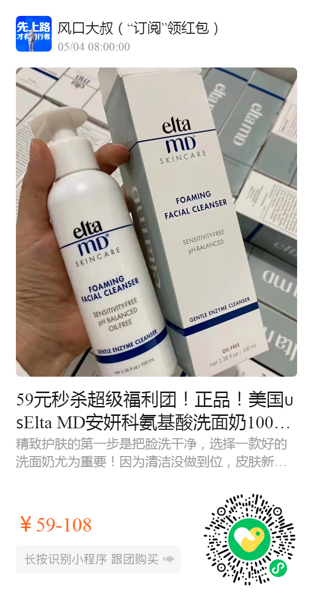 59元秒杀超级福利团!正品!美国Elta MD安妍科氨基酸洗面奶100ML 皮肤科推荐巨温和‼️弱酸性配方 适合地球上99%的人群🙋🏽和人体最接近的PH值好冲洗不假滑✅可卸除淡妆✅洁面+卸妆二合一 ✅今日团价划算到离谱‼️保质期23年