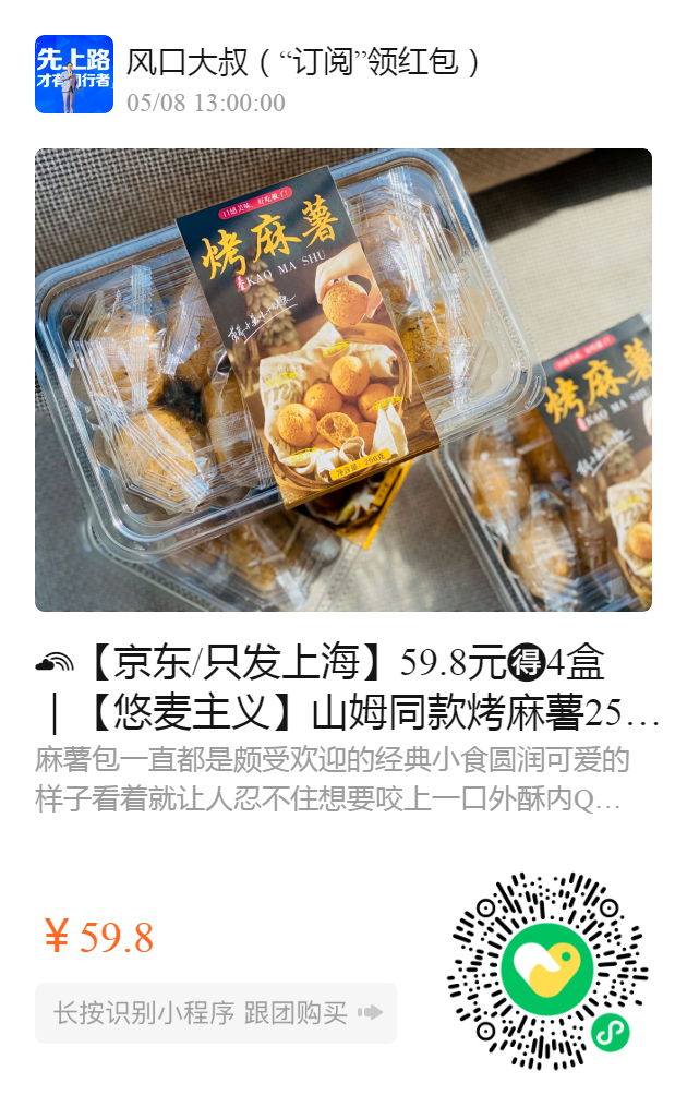 【京东/只发上海】59.8元️4盒|【悠麦主义】山姆同款烤麻薯256g!一盒10个装!爆卖800000盒️外酥内Q,甜香软糯的烤麻薯口感升级啦,无需排队,快递到家,上海人民嗨起来,看产量和物流,随时截团!
