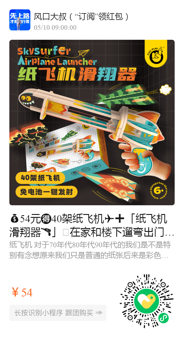 产品名称:纸飞机滑翔器