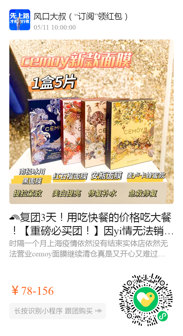复团3天!用吃快餐的价格吃大餐!【重磅必买团!】因yi情无法销售,丝芙兰撤柜了一批澳洲CEMOY新面膜!高级大羊毛🦙给我使劲薅!