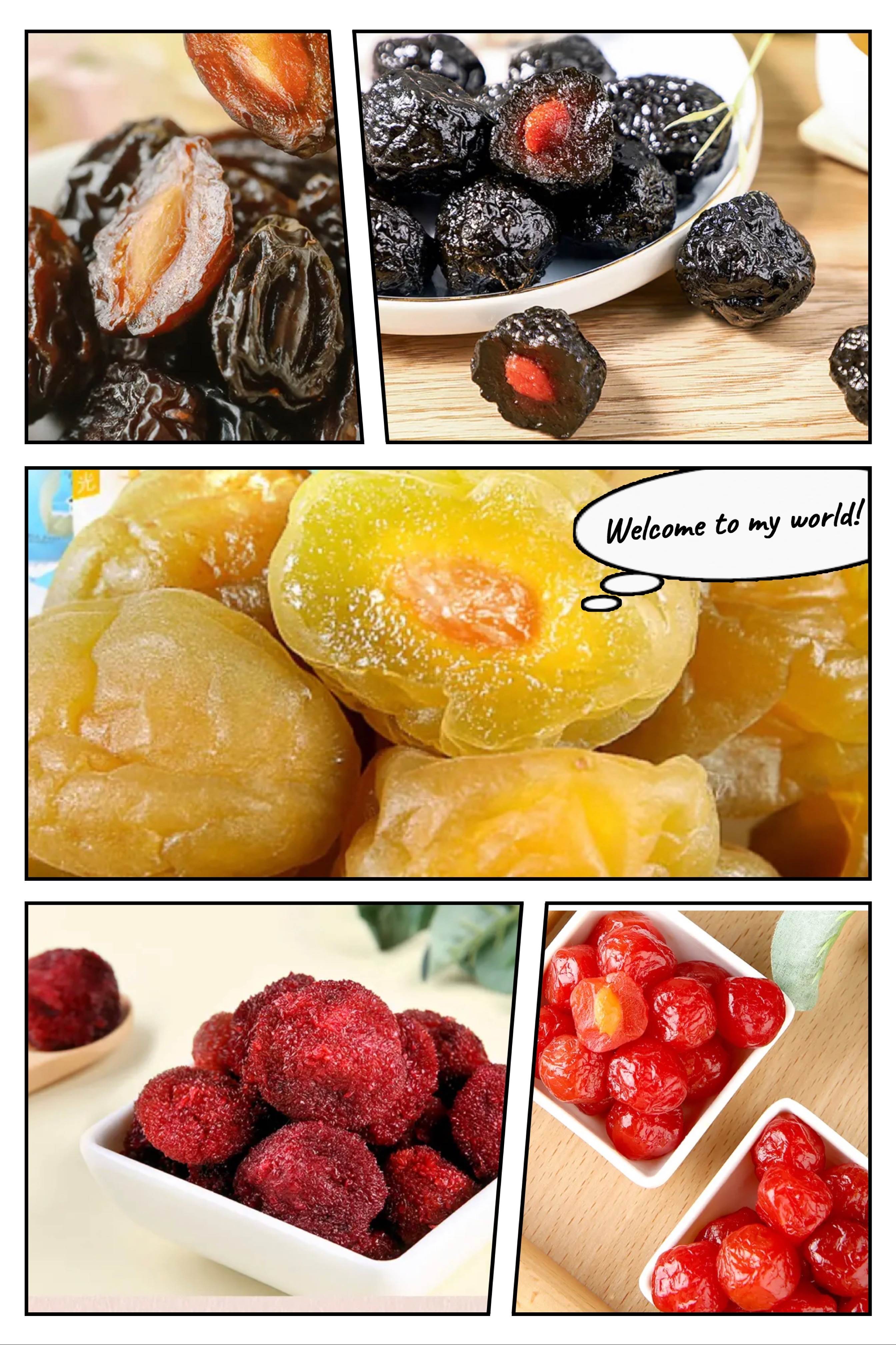 一包就含有8种综合蜜饯🍒,加应子/日式大青梅/乌酸梅/轻青梅/樱桃果/加州西梅/蜂蜜杨梅/九制梅干,一次性全都拥有🥰