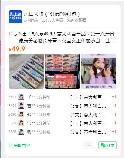 团购5支 49.9元