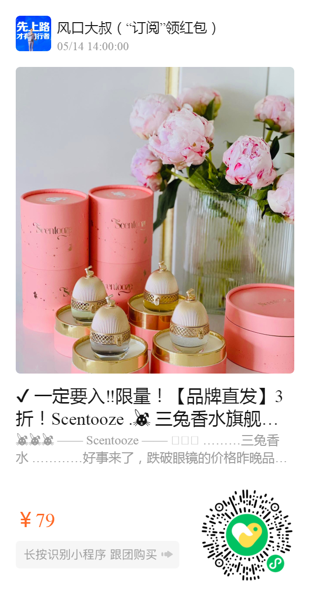 ✔️ 一定要入‼️限量!【品牌直发】3折!Scentooze . 三兔香水旗舰店1瓶299!我们5·20 表白直接79秒杀‼️ 欧阳娜娜、赵露思、Pony推荐!正品带防伪!礼盒装