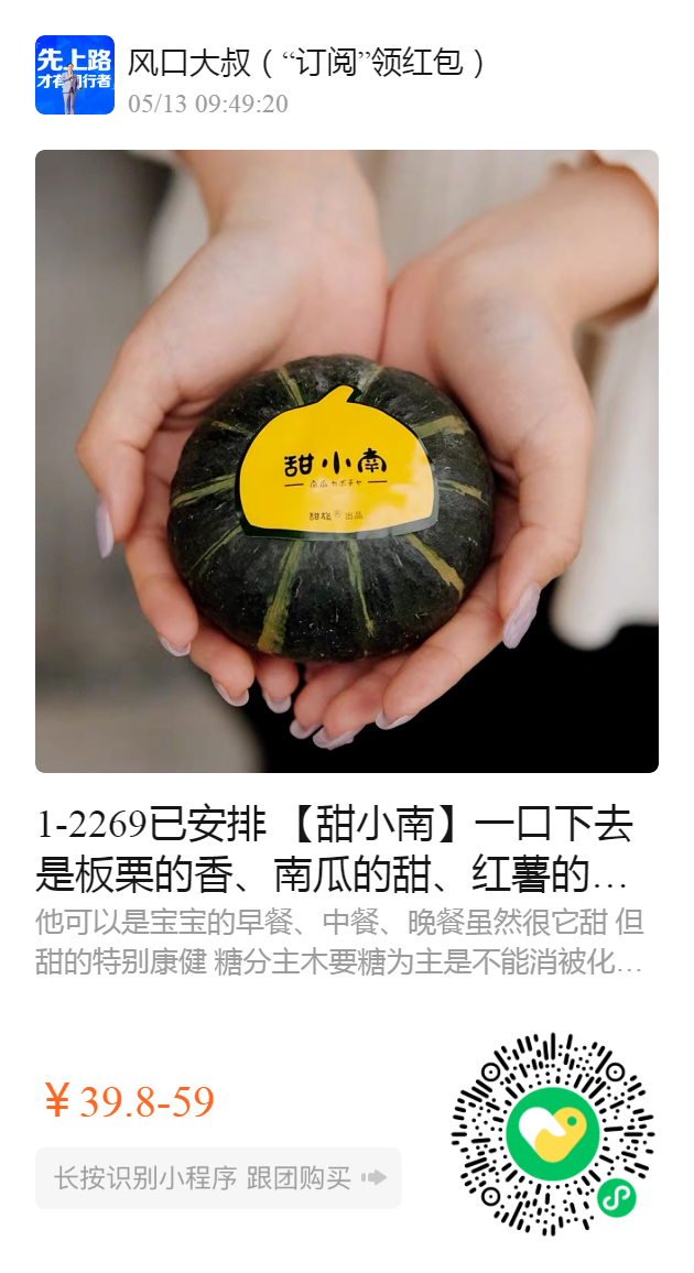 1-2269已安排 【甜小南】一口下去是板栗的香、南瓜的甜、红薯的粉 宝宝早餐、减脂期代餐首选✔️太好吃了 越吃越上瘾 是正儿八经大家爱吃的贝贝南瓜 ️这批甜小南采摘不久,收到存放5-10天后,达到最佳甜度及口感,请根据需要食用!